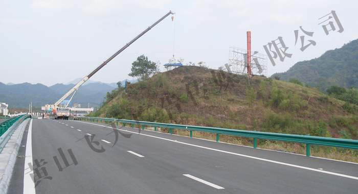 黃祁景高速黟縣漁亭下口收費(fèi)站處高架廣告牌施工